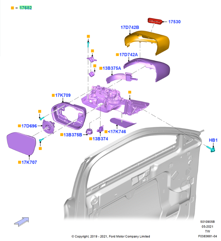 OEM FORD EXPLORER BRAND NEW MIRROR ASSEMBLY RH PASSENGER SIDE - RB5Z17682B THIS MIRROR ASSEMBLY DOES NOT INCLUDE THE MIRROR COVER/CAP - FORD MIRROR CAPS AND COVERS ARE SOLD SEPERATE PER FORD. MIRROR COVER NOT INCLUDED!! OEM FORD PART NUMBER - RB5Z-17682-BA FITS FORD EXPLORER (2020-2025)
