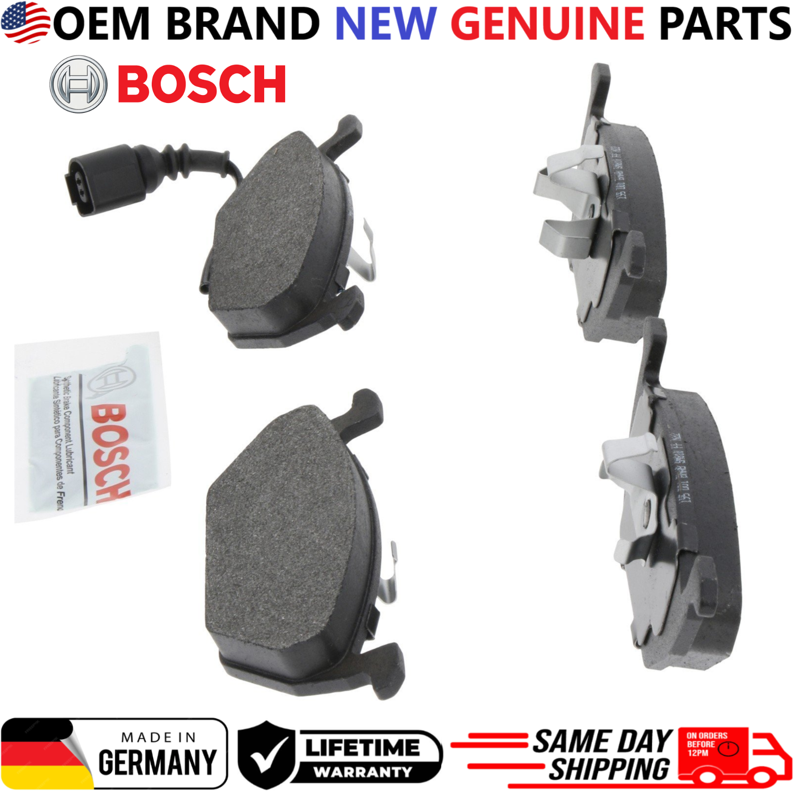 Replace worn rear brake pads with Bosch BE768A Rear Brake Pad Set , engineered for quiet braking, low dust, and consistent stopping performance. This listing is for a REAR brake pad set only and includes hardware for direct OEM-style installation. Product Details Brand: Bosch Part Number: BE768A Position: Rear Brake Pad Type: Ceramic Includes Hardware: Yes Condition: New OEM Part Numbers 1J0698151E, 1JE698151A, 1K0698151F, 1K0698151K, 1KD698151F, 8P0098301A, JZW698302CS, L1J0698151D, L1KD698151, 180698151A, 1J0698151F, 1K0698151A, 1K0698151G, 1K0698151M, 8E0098301AA, 8Z0698151A, JZZ698151AA, L1J0698151F, L1KD698151F, 1J0698151D, 1J0698151G, 1K0698151D, 1K0698151J, 1K0698151N, 8E0098301S, JZW698151, L180698151A, L1K0698151F Interchange / Cross Reference Numbers BE768AH, 17-768A, 17768A, 16-768A, 16768A, BC768A, ZD768A, PC768A, EUR768A, 2313101, 231311951, 355008551, CFC768S, 607117, 1310-0768-10, 1310076810, 1551-0768-10, 1551076810, EHT768A, P85072N, MX768A, OEX768A, MGD768AC, 22-0211-2, 2202112, LD7117, SBC768A, 1311-0768-10, 1311076810, 1600-0768-10, 1600076810, 16446, SGD768AM, 2313181, 231319951 Vehicle Compatibility (REAR Only) 2006–2010 Volkswagen Jetta 2.0L L4 REAR 2006–2009 Volkswagen Jetta 2.5L L5 REAR 2006–2010 Volkswagen Golf 2.0L L4 REAR 2006–2009 Volkswagen Rabbit 2.5L L5 REAR 2006–2010 Audi A3 2.0L L4 REAR 2008–2010 Audi TT 2.0L L4 REAR ⚠ Important Notice: Fits REAR brake systems only . Buyer must verify VIN, engine size, and rear brake configuration before purchase.