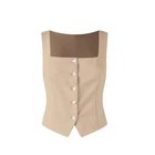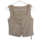 OGL Square Neck Cropped Vest Waistcoat Sleeveless Button Front Tan Size XS NWT Brand new with tags. Measurements: Armpit to armpit: 15'' Shoulder to hem: 18'' Features: This is a versatile and timeless piece that adds a touch of sophistication to any outfit. This waistcoat combines classic tailoring with modern details for a look that is both polished and on-trend. Regular fit Cropped length Square-neckline Sleeveless Button-down front This ponte fabric is the perfect combination of comfort and style. The unique blend of viscose and elastane guarantees a breathable, lightweight material that is also durable and wrinkle-resistant. Enjoy a look and feel that will stand up to whatever your daily life throws at you. Naturally breathable Soft and pleasant to touch Anti-pilling & durable Body: 60% Viscose, 34% Nylon, 6% Spandex