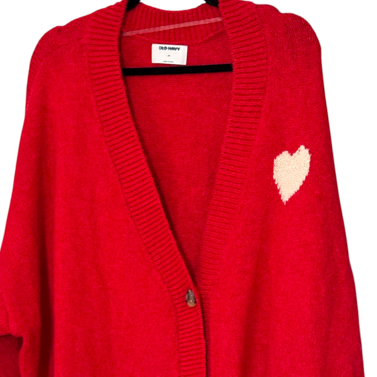 OLD NAVY women’s 3x Soft & Cozy Heart Button Up Sweater Cardigan preppy heart Long line tunic cardigan Wooden buttons