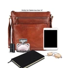 100% GENUINE LEATHER: Handmade in INDIA by skilled craftsman, using genuine leather, soft smooth nylon interior and made with attention to details. Crafted from 100% oil-rich genuine leather, our crossbody bags add an elegant touch to your wardrobe. This crossbody bag has a smooth leather-like feel and smell which gets softer and better with every use. It is designed to resist wear and tear making it a versatile choice for your day to day use. SIZE & Dimension: This is a LARGE cross body bag and the dimensions are 11” L x 11.2" W x 3.5” H. The leather strap is fully adjustable that has a length of 29 inches in full. STYLISH AND FUNCTIONAL: The Olga Leather Crossbody bag is your new go-to bag. It has a front large zipper pocket, 1 regular zipper pocket 1 central zippered compartment with zip pocket inside with 1 phone pocket and 1 key pocket and one zipper pocket and an additional pocket for phone for easy access. The main compartment can fit your valuables such as iPad (7.9" Size), car keys, small makeups, wallet, charger, etc. HIGH-QUALITY CROSSBODY BAG: Enjoy the perfect mix of durability, softness, and utility with our women’s cross body leather bag. Made with 100% genuine leather, each stitching on the bag is sewed with special care by professional artisans to make it timeless, lightweight, and fashionable. Every bag goes through a series of quality checks to ensure the best quality is delivered to you. The casual-cool over the shoulder look of this bag brings a stylish flair to all your looks. IDEAL GIFT: This bag is perfect for gifting to your loved ones, on any occasions. Whether it’s Valentine's Day, Mother’s day, Easter, Christmas or Birthdays and Anniversaries, this is the perfect gift option for all occasions. WHY CHOOSE US: We know you'll love our handbag as much as we do, if for any reason you're not 100% SATISFIED, let us know and our customer service team will make things right with a refund or a free replacement, whichever you prefer.