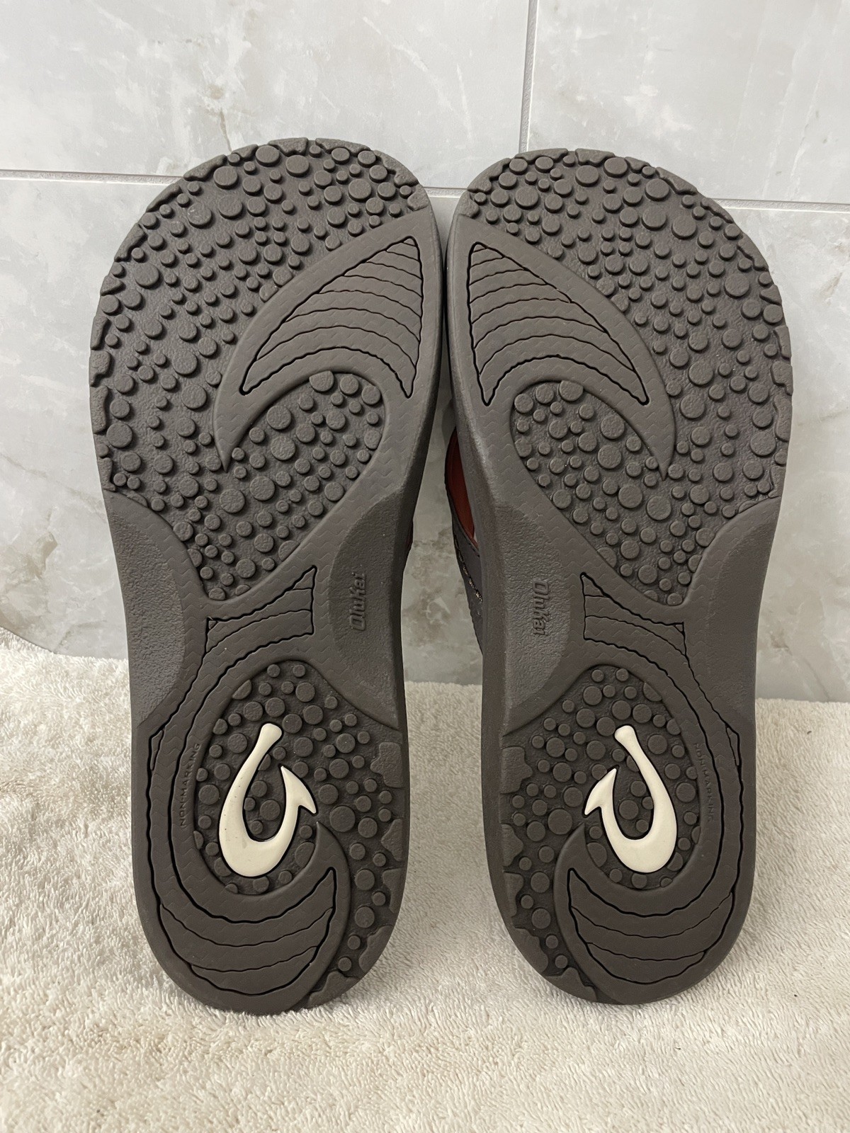 The OLUKAI "HOKUA" Dark Java Brown Leather Flip Flop Sandals for men in size 13 are a stylish and comfortable choice for warm weather. Made with high-quality leather, these sandals feature a classic flip flop style with a durable outsole. The rich brown color and sleek design make them versatile for various casual outfits. Perfect for outdoor activities or everyday wear, these sandals are a must-have for any man's shoe collection. New without tags