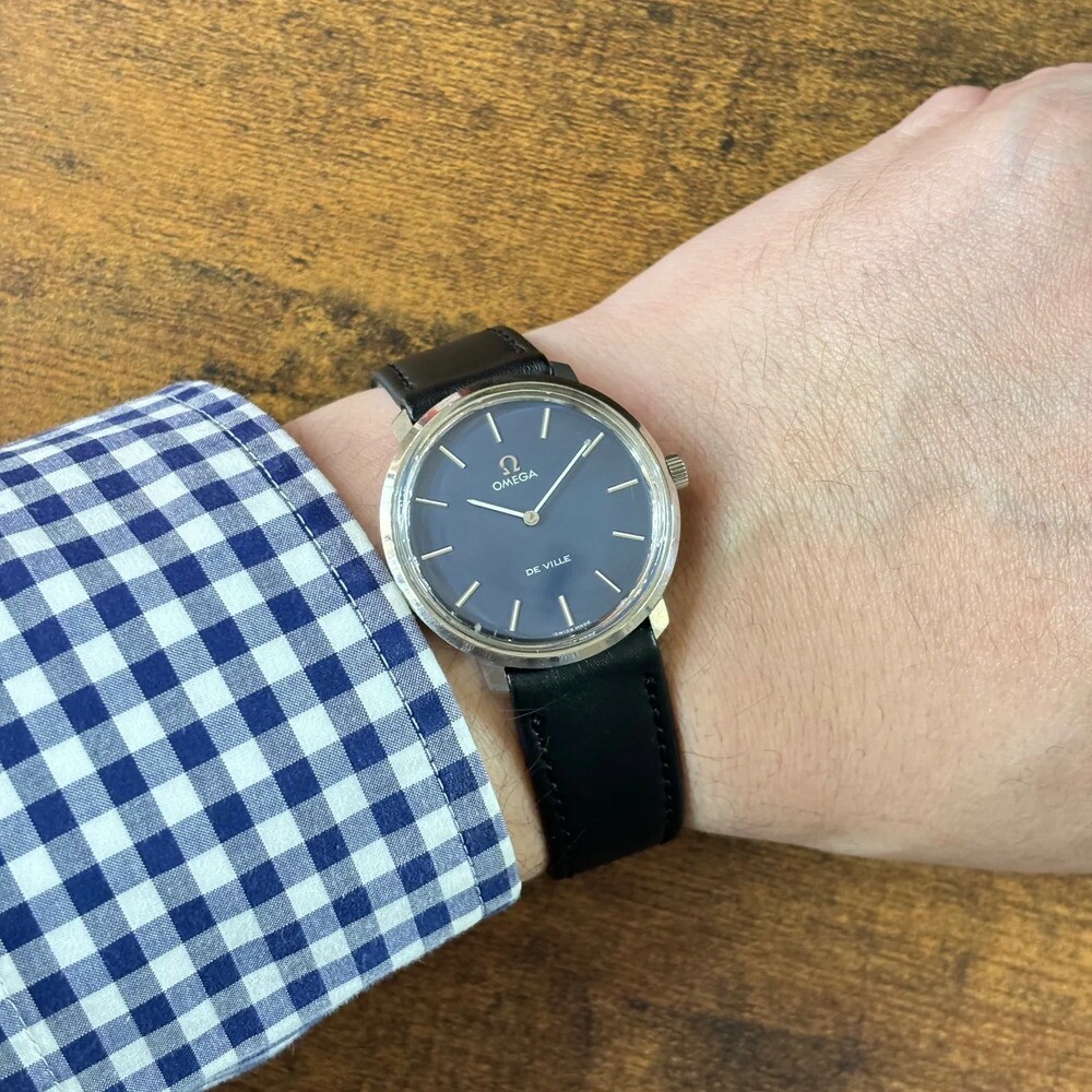 This OMEGA De Ville watch is a stunning piece with a classic navy dial and sleek manual wind movement. The one-piece case gives it a refined, timeless look. While condition details vary, the seller is responsive to inquiries. Import duties may apply, but many items qualify for duty-free entry under the U.S.-Japan trade agreement. A fantastic choice for watch enthusiasts seeking a sophisticated timepiece with Japanese craftsmanship.
