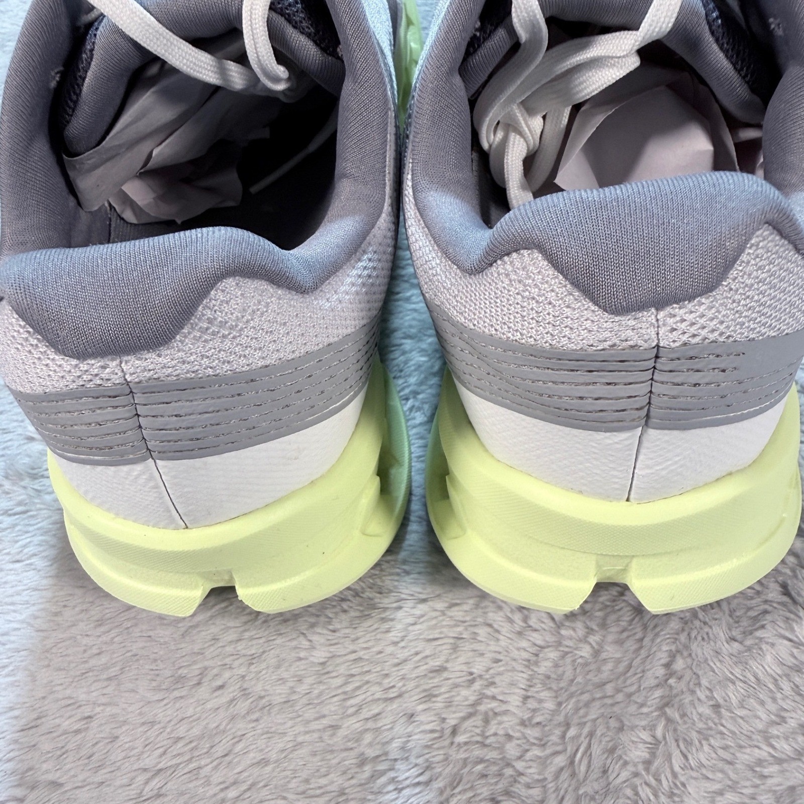 Experience ultimate comfort and performance with these ON Running Cloudswift running shoes. Engineered for urban exploration, these shoes boast a responsive cushioning system that absorbs impact and propels you forward with every stride. The lightweight, breathable mesh upper keeps your feet cool and comfortable, while the unique CloudTec® sole provides a smooth ride on hard surfaces. The striking light gray and neon yellow color combination adds a pop of style to your active wardrobe. Perfect for your daily runs, city adventures, or casual wear. Measurements: • US W 8 • UK 6 • EU 39 • JP 25 Keywords: ON Running, Cloudswift, running shoes, women's athletic, light gray, neon yellow, performance footwear, urban running, comfortable, breathable, lightweight, cushioned, athletic sneakers, sportswear Beure to look at all pictures for any sizing or distress