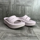 The OOFOS OOMega OOAHH Women's size 10 Stardust Platform Comfort Slide is a stylish and comfortable sandal perfect for casual occasions in the summer, fall, or spring. With a slip-on closure and low heel height, these slides feature a rubber outsole and foam insole for added comfort. The solid stardust color and synthetic lining make them a versatile choice, while the flat heel style and rubber upper material ensure stability and durability. Perfect for women looking for a comfortable and fashionable option for everyday wear.