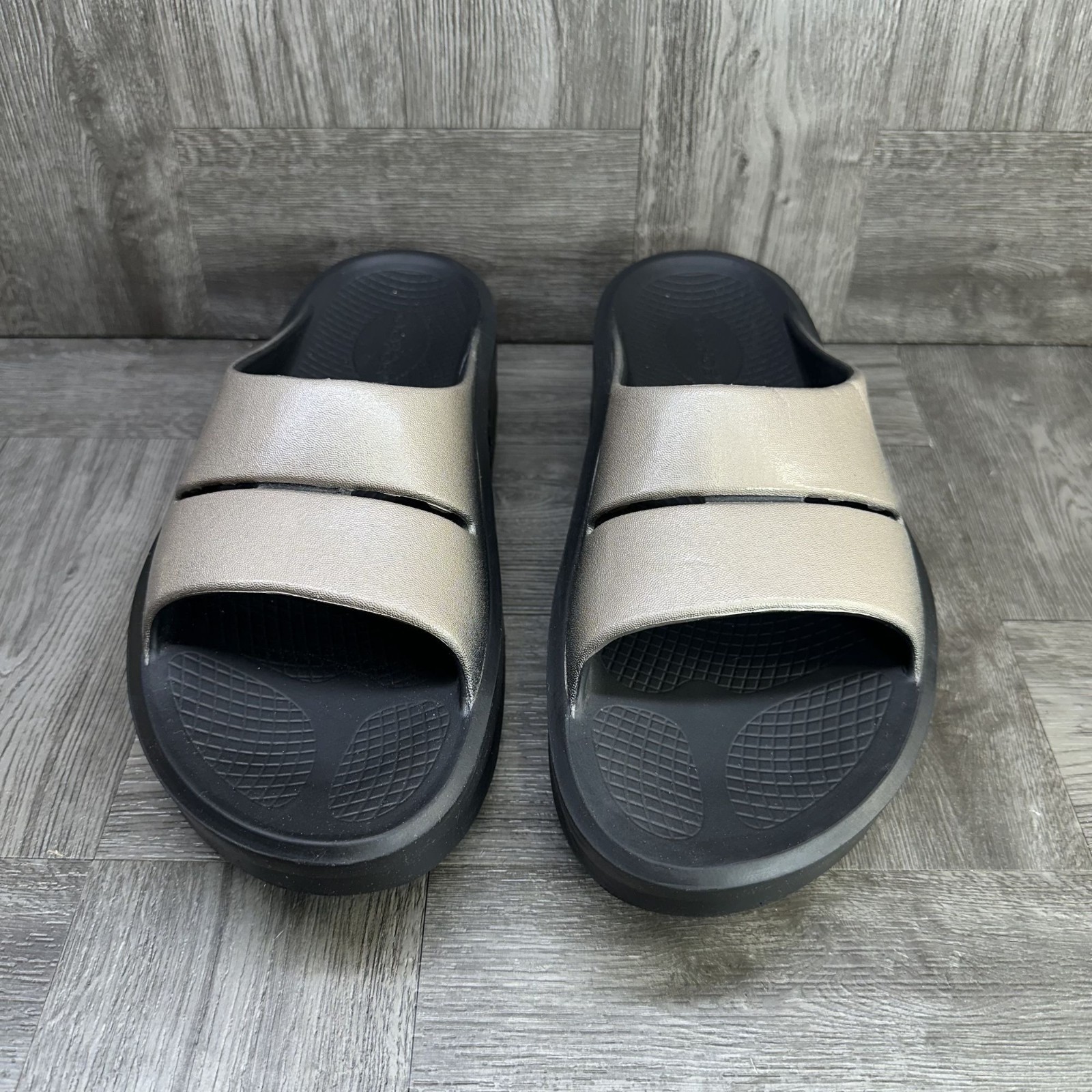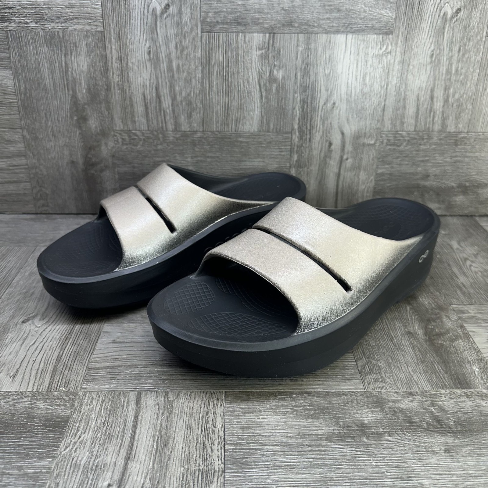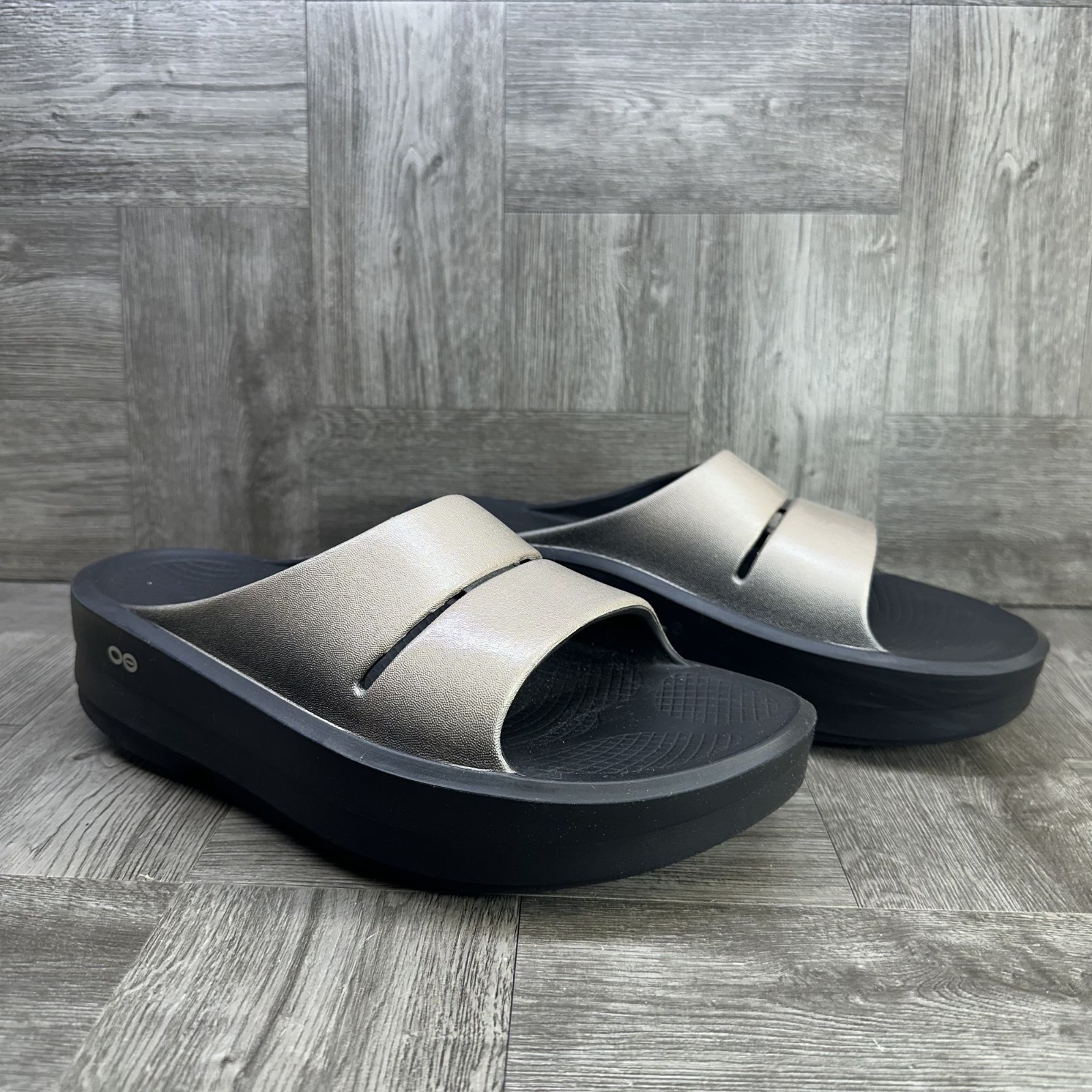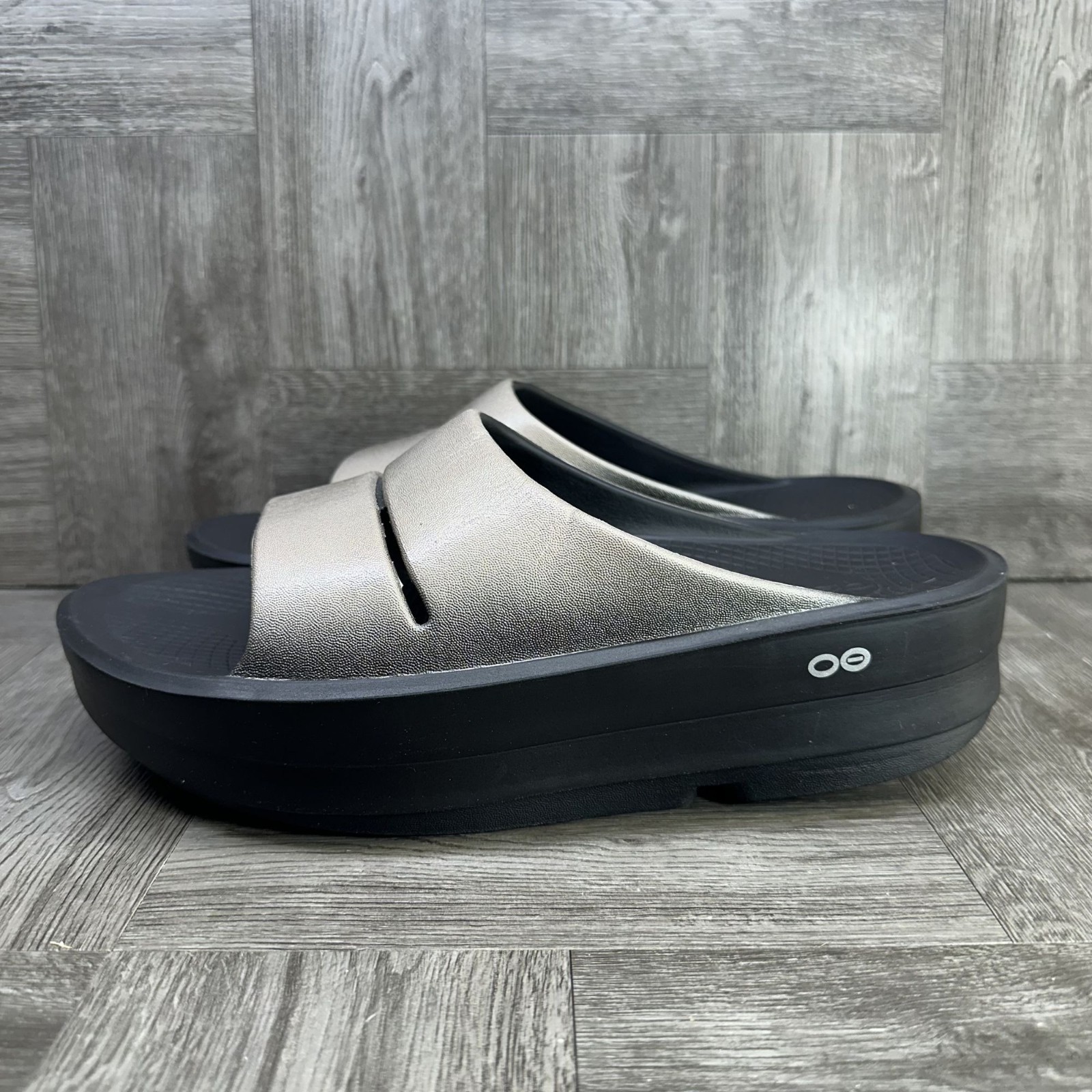 The OOFOS OOMega OOAHH Women's size 10 Luxe Latte Platform Comfort Slide is a stylish and comfortable sandal perfect for casual occasions. Featuring a slip-on design with a low heel and synthetic lining, these sandals are ideal for the summer and spring seasons. The beige color and OOFOS logo accents add a touch of style, while the rubber outsole provides durability. Designed for comfort, these platform slides offer a relaxed fit and are sure to become a go-to addition to any woman's footwear collection. Small crease on shoe - please see pics