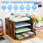 Wood Desk Organizer Accessories, 4-Tier Paper Letter Tray File Organizer with Drawer & 2 Pen Holder, Office Desk Accessories Workspace Desktop Organizer for Home Office Supplies Decor(Brown) 【Ideal Desk Organizer】's newest 4-tier desktop file organizer provides ample storage space for documents, stationery, electronic devices and office supplies, keeping your desktop tidy and organized. 【Space Saving】This desk organizer has a large capacity drawer and 2 hanging pen holders, providing plenty of storage space, easy to sort and organize desk accessories, enhance office convenience and study efficiency. 【Easy to Assemble】The desk organizer comes packaged with detailed installation instructions, necessary tools and parts. It takes only a few minutes to assemble. 【Classic and Durable】Selected high-quality wood is combined with modern iron design to present a classic rustic brown texture. Stable structure and durable. Make your desk instantly glow with elegant style. 【Satisfied Service】Improve your efficiency and creativity with the desk organizer. If you are not satisfied with product due to quality issues, please contact us and we will respond to your email within 24 hours.