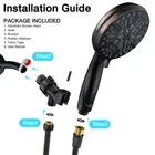 @Satisfaction – As the shower system specialist manufacturer, we promise that we only provide best quality product to customer, in case you catch any problem during using this rainfall massaging shower head, please us directly, we will response to you within 24 hours. 30-day money-back with a 1-year additional @ Powerful removable large Shower Head – The anti clog and self-clean silicone nozzles will boost more high-pressure water flow by its internal innovative design, giving you a relaxed shower experience even at low water flow & pressure. It is absolutely your best buy @ Durable/Premium Material - This handheld showerhead is made of high-quality rustproof ABS with luxury oil rubbed bronze finish, high-temperature resistance, high hardness, safer and more durable. You can freely adjust the angles and directions as your desire for hands-free operation with its Angle-adjustable overhead bracket @ Multi Function Shower Head Set - hydro jet overall showerheads has 5 settings for choice. The PAUSE function is for water saving as well as keeps water warm during you doing shampoo, shaving etc. Power rain spray and pulsed massage spray and power mist spray will redefine your shower experience. You can use it in your house,apartment,or outdoor,camp etc. for enjoying a strong SPA bath @ Luxurious Hand Held Shower Head Set - The 5-functions 5" high pressure shower head good kit comes with 60 inch stainless steel extened hose, adjustable brass ball joint overhead bracket, anti-leak Teflon tape, rubber washers, and installation guide. You can easily install without any tooling in minutes, it fits any American Standard shower arm