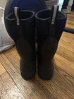 Get ready for the cold weather with these original Muck Boots from the Muck Boot Company. These black snow boots feature an insulated and waterproof design, perfect for keeping your feet warm and dry during winter. The boots have a round toe shape and pull-on closure for easy wear, and are made with a durable rubber upper and lining material. With a UK shoe size of 14 and US shoe size of 15, these boots are perfect for men who want to stay comfortable during winter. The boots also feature a Mossy Oak product line and are made in China. Whether you're going on a winter hike or just want to stay comfortable at home, these Muck Boots will keep your feet warm and dry all season long.