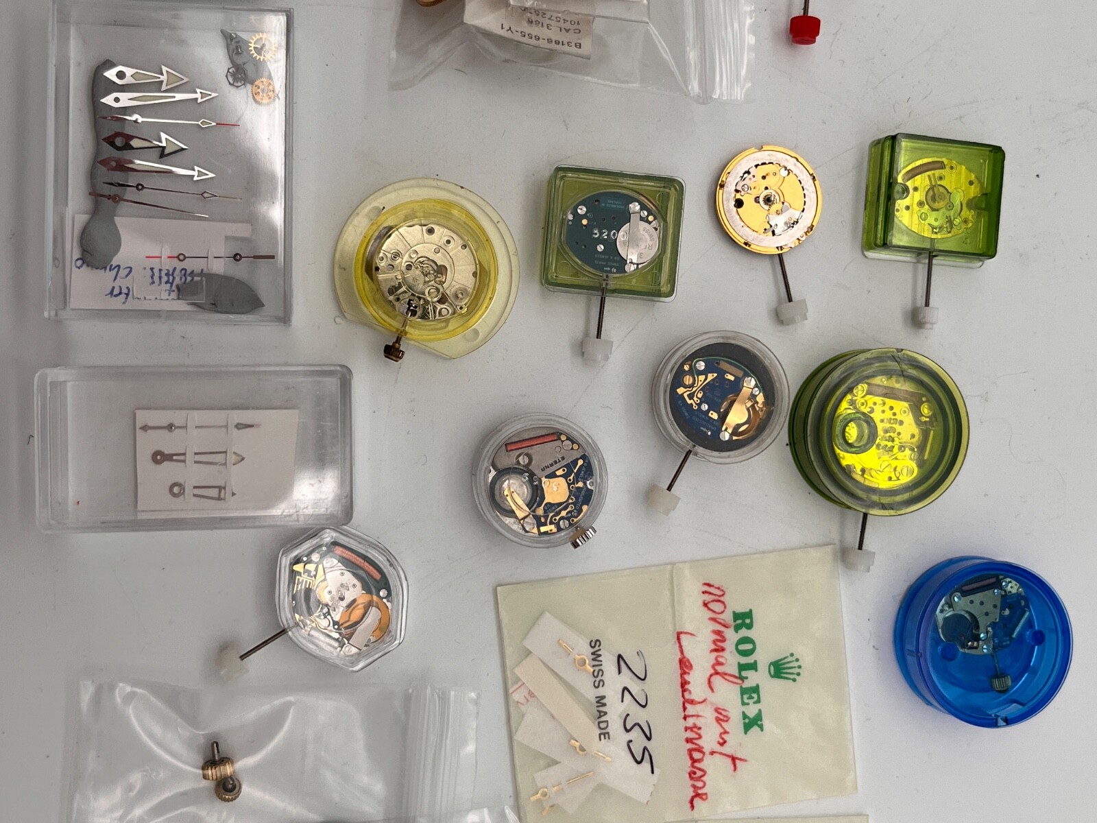 We are one of the largest sellers of watches, watch parts, jewelry and other collectibles on eBay. State-of-Time GmbH is pleased to offer you the unique opportunity to purchase this LOT of spare parts today. Details 100% original! Unique chance of high value spare parts. Product/Product: Lot of spare parts (see images) Manufacturer / Brand: Rolex, Omega, Tissot, Longines, ETA, Blancpain, Maurice Lacroix, IWC, ... Year of production / Date of production: approx. 1960s-2010s color see images Material/material: metal Modell: different parts (please see images) Condition of the article: The condition of the parts is as shown in the pictures. All parts might have been used and are untested for function. Watchmaker estate. We guarantee the authenticity! What you see is what you get. Scope of delivery/scope of delivery: Article, invoice Dont hesitate to ask us any questions before bidding.
