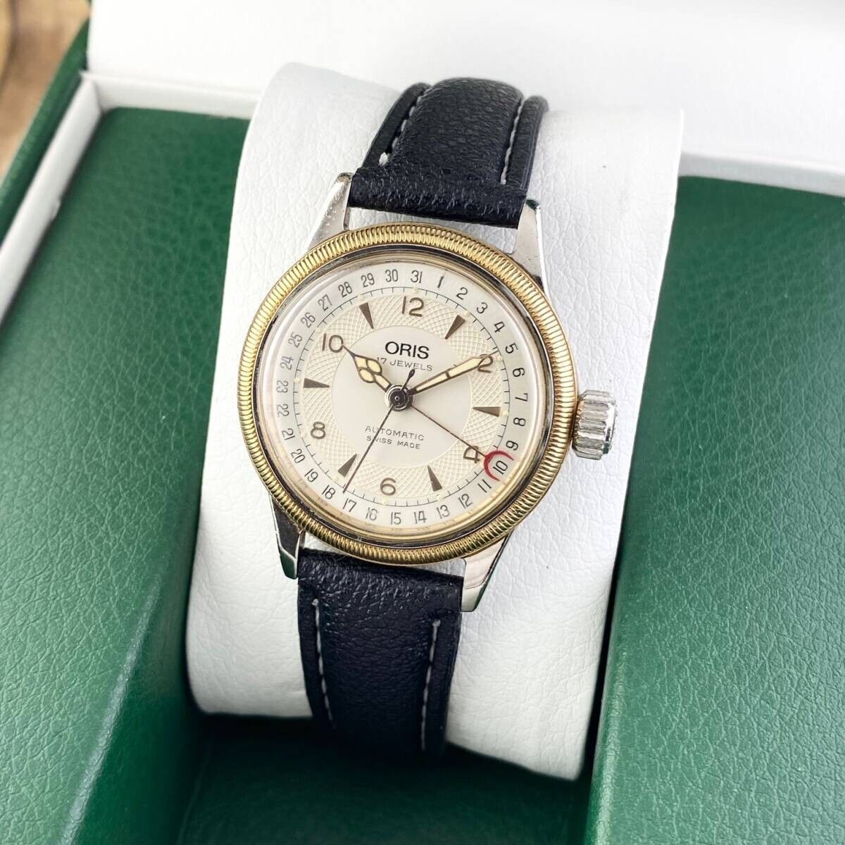 This Oris Big Crown Pointer Date is a stunning automatic watch with a classic, timeless design. The condition is excellent—barely any signs of wear, and it keeps perfect time. The 18.5cm max wrist size fits comfortably, and it comes as a complete set. A fantastic choice for anyone who appreciates quality and style!