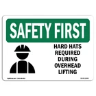 OSHA Safety First Sign - Hard Hats Required During Overhead with Symbol | Alu...
