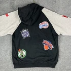 Show off your love for the Los Angeles Lakers, Boston Celtics, Minnesota Timberwolves, 76ers and others with this vintage NBA patch zip-up hoodie. Made of high-quality materials, this officially licensed sweatshirt features the team's iconic logo and is perfect for any basketball fan. The hoodie comes in size 2XL and is designed for men, with a black color and made in China. Whether you're a collector or just looking for a stylish addition to your wardrobe, this sweatshirt is a must-have. It's great for wearing to games or just around town, and is sure to turn heads with its unique design. Don't miss out on this rare find that showcases your love for the Lakers!