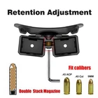 OWB Double Magazine Holster, Universal Magazine Holder for 9mm/40 Dual Stack Magazines fit Glock/S&W/Ruger/Sig Sauer/Taurus/Beretta/Springfield/CZ/Walther/H&K Mags, Adjustable Mag Pouch Description Features: Universal Mag Holster: This double magazine holder fits most common pistol models with 9mm/40 double stack magazines - Glock 17/19/22/26/27/31/32/33/35/37/38/39 Gen 1/2/3/4/5; Beretta 92 M9A1/92FS/96/PX4 Storm; Browning HI-Power 9mm/40; S&W M&P 9mm/40; Taurus PT92/PT800 Series 9mm/40; Sig Sauer P320/P226; Colt 2000 9mm; Walther PPX PPQ; H&K P30/VP9; Springfield XD Tactical/XDM 9MM/40(Double stack magazine). For more models, please check the FIT magazines list. Adjustable Paddle: Set your ideal carry angle with the 30adjustable paddle. This magazine pouch with the paddle allows to quickly attach on and remove from your belt in width up to 2". Side-clips Design & Retention Adjustment: The Side-clips feature allows this double magazine holster to fit many 9mm/40 magazines in length 1.29'' - 1.37'', in width 0.78'' - 0.9'' in tool-free way while keep your mags locked and tight with no movement. And this mag holster also has great retention adjustment that allows you to set the tension to your personal comfort by simply loosening or tightening the screw with the Allen Key(Included) Durability: These mag holder is made of durable, lightweight polymer material that is resistant to impact, heat and scratch. It's designed for tactical training, hunting, military, the range, law enforcement agencies. Buy with Confidence: Our mag holster has a 30-day money back guarantee and 12-month warranty(100% replace new one). Any question, please feel free to contact us! Product Details: Color: Black Brand: Bedone Material: polymer Product Dimensions: 2.5"L x 1.5"W x 1.8"H Item Weight: 4.8 ounces Color: Black Brand: Bedone Material: polymer Product Dimensions: 2.5"L x 1.5"W x 1.8"H Item Weight: 4.8 ounces Number Of Pockets: 2 Manufacturer: Bedone UPC: 612292160036 Item Package Dimensions L x W x H: 5.4 x 5.1 x 1.9 inches Package Weight: 0.14 Kilograms Item Dimensions LxWxH: 2.5 x 1.5 x 1.8 inches Brand Name: Bedone Part Number: 4347319406 Style: Double Magzine Holster(Paddle) Size: Paddle Double Mag Holster Style Date First Available: May 22, 2018 Shipping Free fast shipping Return Policy All items qualify for returns within 30 days of receipt.