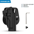 【HOLSTER FIT GUIDE】 Outside the Waistband Holster Custom Molded Fit for Beretta 92 FS 92FS Inox /Compact 92S Full Size/Compact/Centurion M9 M9_22 92G ELITE LTT /Centurion /Compact Taurus PT92 pistol. Notice: This tactical holster can't fit with pistols with laser or sight. (Check the second chart details please) 【LEVEL Ⅱ RETENTION】 Auto locking system achieves an audible click when you holster the weapon, which can secure your weapon inside this OWB holster to ensure ultimate safety. It is designed to be quickly drawn and re-holstered for easier access by pressing release button with your forefinger whenever needed. 【60° ADJUSTABLE PADDLE CANT】 Ergonomically-designed thinner paddle holsters is easily clipped anywhere on your belt or inside the pants waistline, it is convenient to conceal your weapon under your clothing. Simple set cant from 0-60 degrees to fit a comfortable position with Allen key, you won’t have to worry about the firearm digging into your leg the way belt loop holsters can. Compatible duty belt width up to 2 inch. 【MILITARY-GRADE MATERIAL & EXCELLENT DESIGN】 This polymer holster is made of high standard polymer that is waterproof and durable, almost no maintenance required, adapt to every bad environments. The Excellent design of this paddle holster features a wide concave-shaped piece of plastic which works as the backing of the holster, which keeps the firearm away from the hip and ensures a firm grip and the drawing movement is quick and hurdle-free. 【APPLY FOR EVERY PLACES】 Wearing a belt is not a compulsion for using a paddle holster, you can simply tuck it over your waistband, so it is widely used by duty holsters, uniformed law enforcement and peace officers, security personnel, military personnel, private persons and shooting sports holsters all over the world. If you are looking for a gun holster, this is good choice for you.