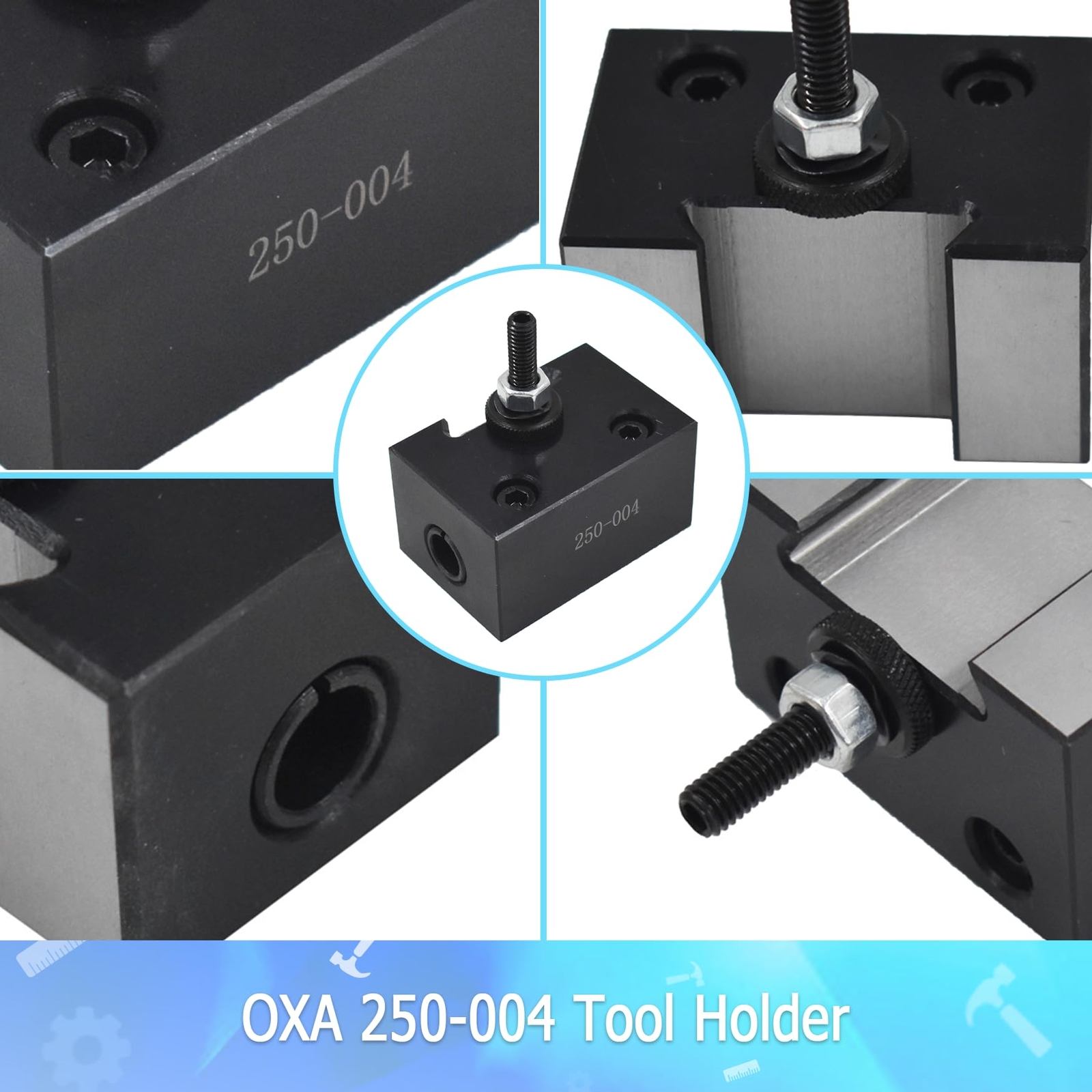 Applicable: Fit for use with OXA tool post 250-000 Clamping range: Holds 3/8" with bushing (1/2" diameter without bushing) Material: The 250-004 quick change tool holder is made of steel material, which is solid, not easily damaged, and more durable. It is a good partner for your lathe processing. High accuracy: The 250-004 quick change tool holder has undergone accuracy machining, fine grinding, high accuracy, strong stability, and is not prone to shaking, ensuring the accuracy of repeated processing. Application: The 250-004 quick change tool holder can be used in conjunction with straight shank drill bits or round shank cutting tools for cutting processes such as drilling, reaming, and boring.