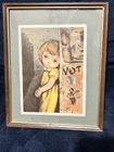 These two pictures by Oz Franca are so cute. They are signed by him. The frame is 11 x 8. The pictures inside the frame are 5 1/ 2 x 7 1/2. They are titled guys sad eyes dated 1964. They are in the original frames .