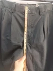 These Oak Hill men's pants are a size 44X28 with a straight fit and flat front design in a stylish black color. Made from a comfortable and lightweight canvas fabric, they feature a zipper and button closure, along with convenient pockets. Suitable for various occasions such as casual wear, work, or even a formal event, these versatile pants offer a high-rise waist and stretch for added comfort. Ideal for all seasons, they are machine washable for easy care, making them a practical and stylish addition to any wardrobe.