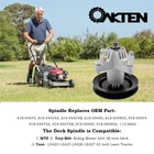 Replace OEM number: 618-4A 618-04474B 618-5A 918-4A 918-04474B 918-5A 112-6063 Fits MTD Troy-Bilt Riding Mower with 38 inch Deck Fits Toro LX423 LX425 LX426 LX427 42 Inch Lawn Tractor Designed to deliver a reliable performance, Ideal for use as an OEM replacement deck spindle 6" Overall Height, 5-1/2" Pulley O.D, 6 pt. star design. 4 Mounting screws included, 1 pc per box.