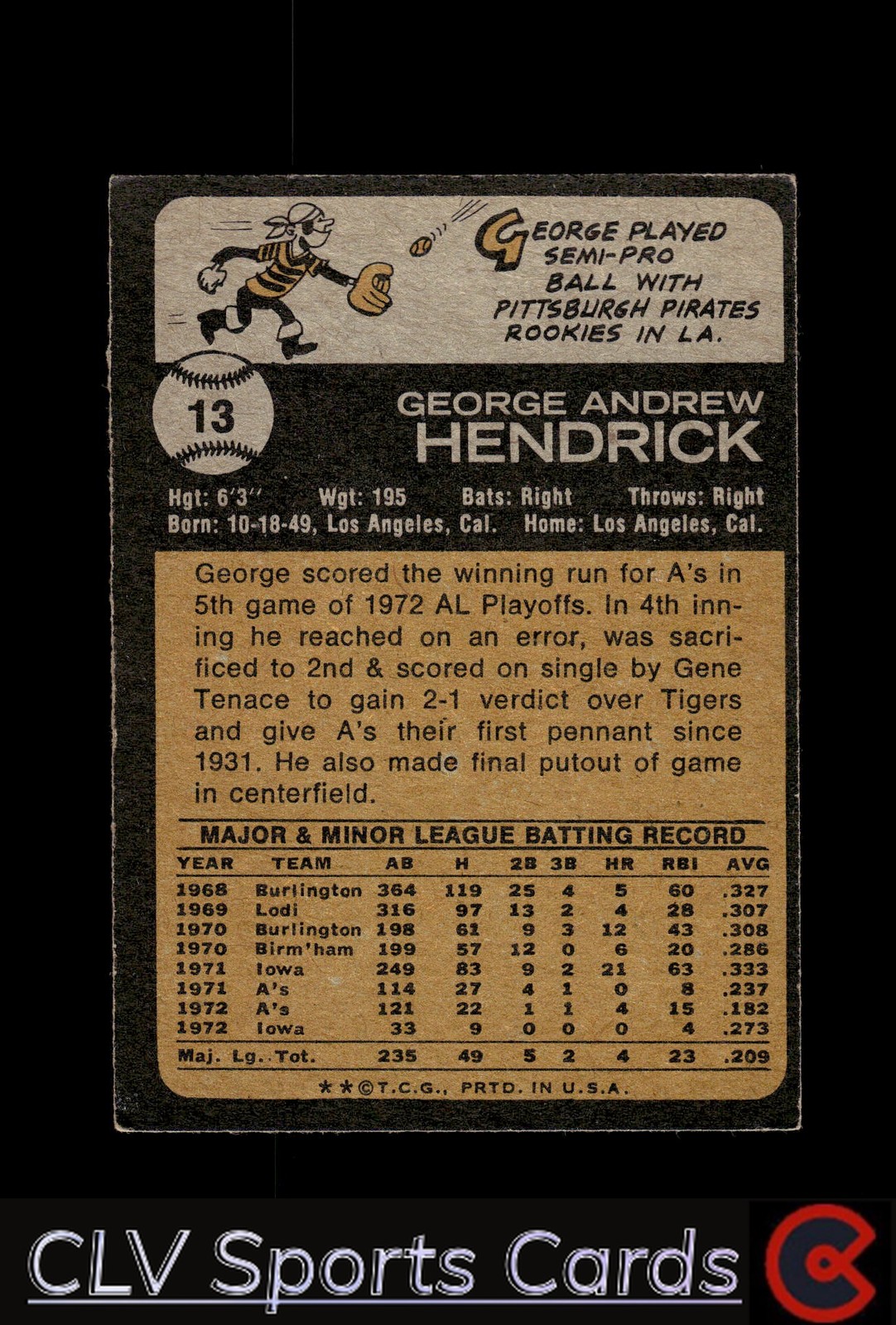 Very Good Oakland Athletics George Hendrick #13 Topps 1973 sports Baseball Most days I put cards up all day long. I have a very large inventory concentrating mainly on the 70s with plans to fill in the gaps throughout the 50s and 60s as well. If you type the team name on my site you will pull up every card in that team, same way with the year. I have almost every card through the 70s up all the time. Good luck and enjoy the store.