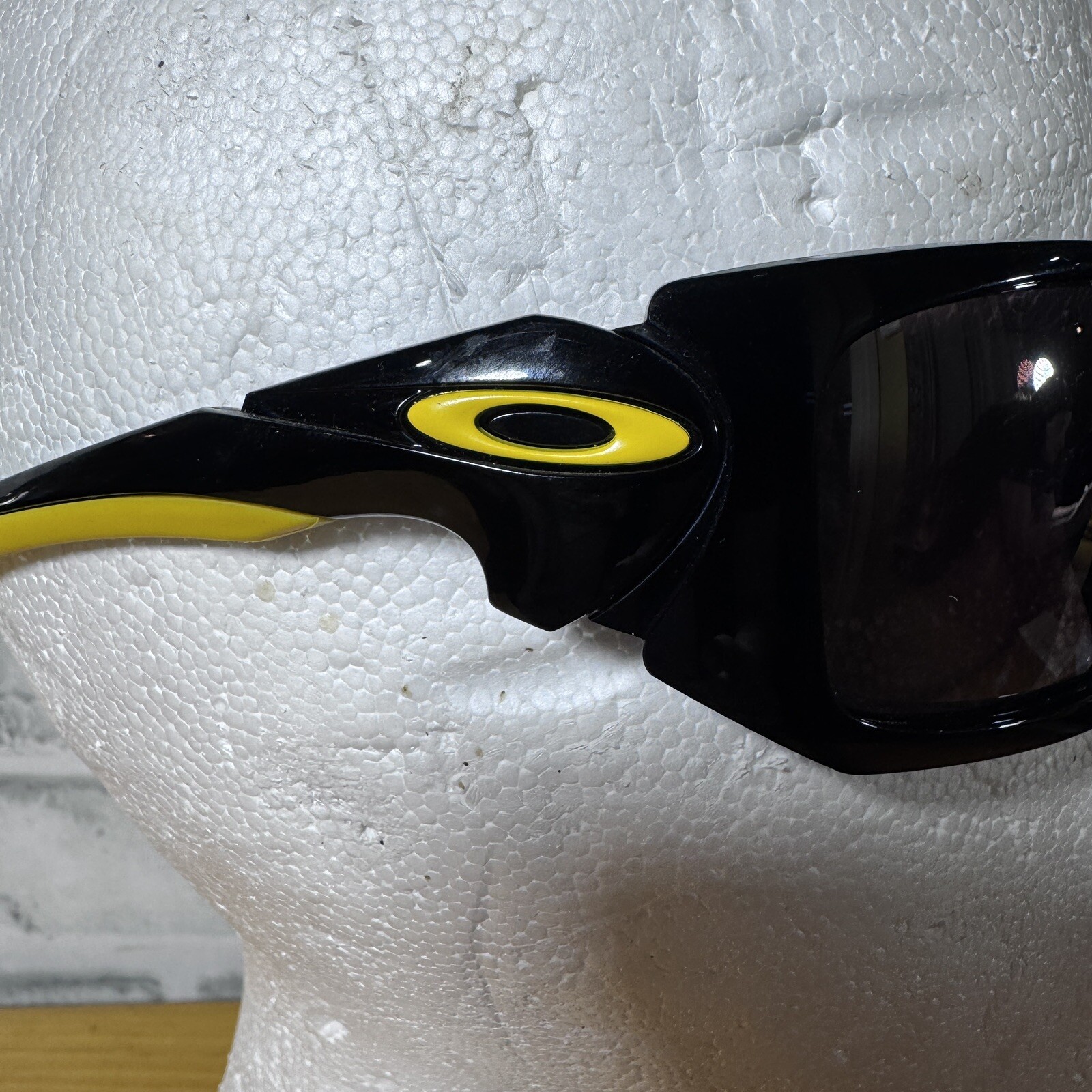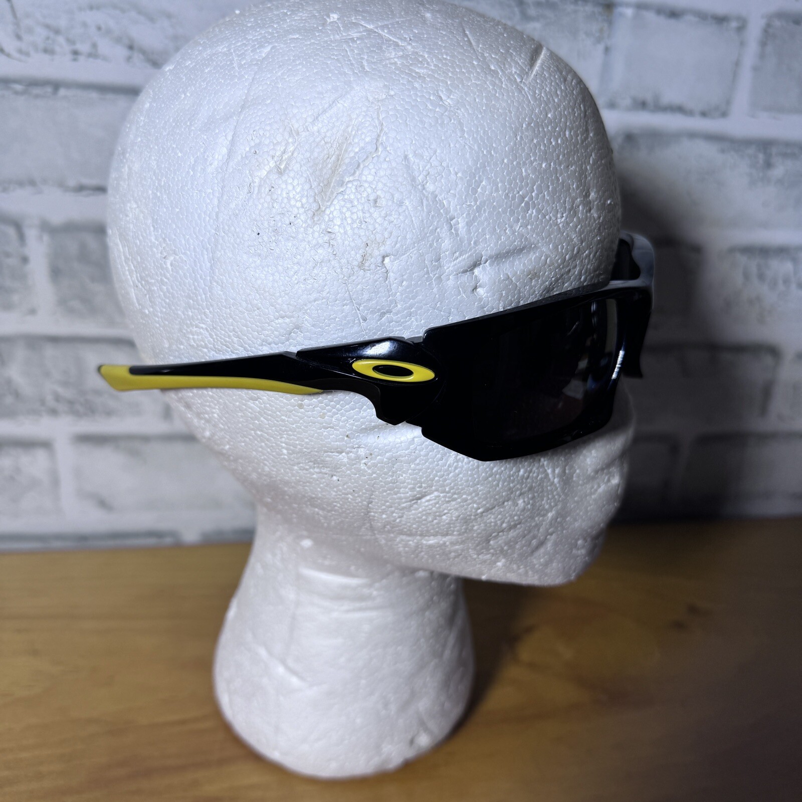 The Oakley Livestrong Scalpel Sunglasses in black with yellow iridium lens are designed for men with a sporty style. These wrap-around sunglasses feature polarized tinted lenses for enhanced vision and protection. The black plastic frame with Oakley branding is sturdy and stylish, making them a great choice for outdoor activities. Perfect for those seeking quality sunglasses that offer both performance and style. In good pre owned condition. Shows signs of light use.