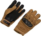 Oakley was already producing high tech, state-of-the-art tactical gloves for the US military when it was approached by the Department of Defense to upgrade its original design by adding a full-grain leather palm and micro ventilation. The result is the TAA-compliant Oakley Factory Pilot tactical glove that combines maximum all-weather protection, comfort and breathability without compromising performance and safety.This aggressively-designed Oakley Factory Pilot glove has four-way stretch panels that deliver a more precise fit while mid-height cuffs allow for a full range of motion. Airprene also keeps moisture at bay while carbon fiber knuckle plates protect hands at all times.For military operators who need maximum protection and minimal interference from the gloves they wear on exercise or while deployed, especially in warm weather climates, these Oakley Factory Pilot gloves are great for soldiers who expect the best. - TAA Compliant - Unobtainium® surfacing palms and fingers for a secure grip - Touchscreen compatible - Protective knuckle guard - Goatskin leather palm - 70% Goatskin - 10% Elastane - 8% Nylon Mesh - 6% Chloroprene Rubber - 3% Rubber - 3% Carbon
