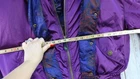 The Obermeyer Ski Jacket is a vintage 90s bomber-style coat in a stunning purple color with a solid pattern. Made with nylon outer shell and lined with nylon, this short-length jacket features long sleeves, a zip closure, and quilted accents for added style. Perfect for winter sports or casual wear, this jacket includes inner and zipped pockets for convenience. The bomber jacket design and Y2K aesthetic make it a unique and stylish addition to any wardrobe for those who love the 80s and 90s vibe.