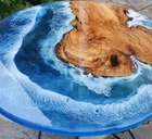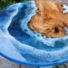 Ocean Beach Blue Epoxy Table Top , Coffee Table Round , Resin River Table Decor