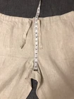 Embrace the effortless style with Ocean & Coast Linen Pants, tailored for a comfortable fit that's just right for any casual to semi-formal setting. Ideal for the beach-goer or the island visitor, these chino-style pants in a versatile beige hue are perfect for creating a laid-back look with a touch of preppy charm. The high-quality linen material ensures breathability and comfort, making them an excellent choice for warm-weather activities. Unstretched waist is 42 inches and inseam is 33 inches. Rise is 13 inches. Designed with both convenience and fashion in mind, these pants feature an elastic waist with a drawstring and zip closure, eliminating the need for belt loops while providing a secure fit. They are equipped with handy features like quick-dry fabric, hidden back pocket buttons, and lightweight comfort. Whether you're attending a beachside wedding or enjoying a tropical vacation, these pants are a go-to for any occasion that calls for a casual yet polished ensemble.