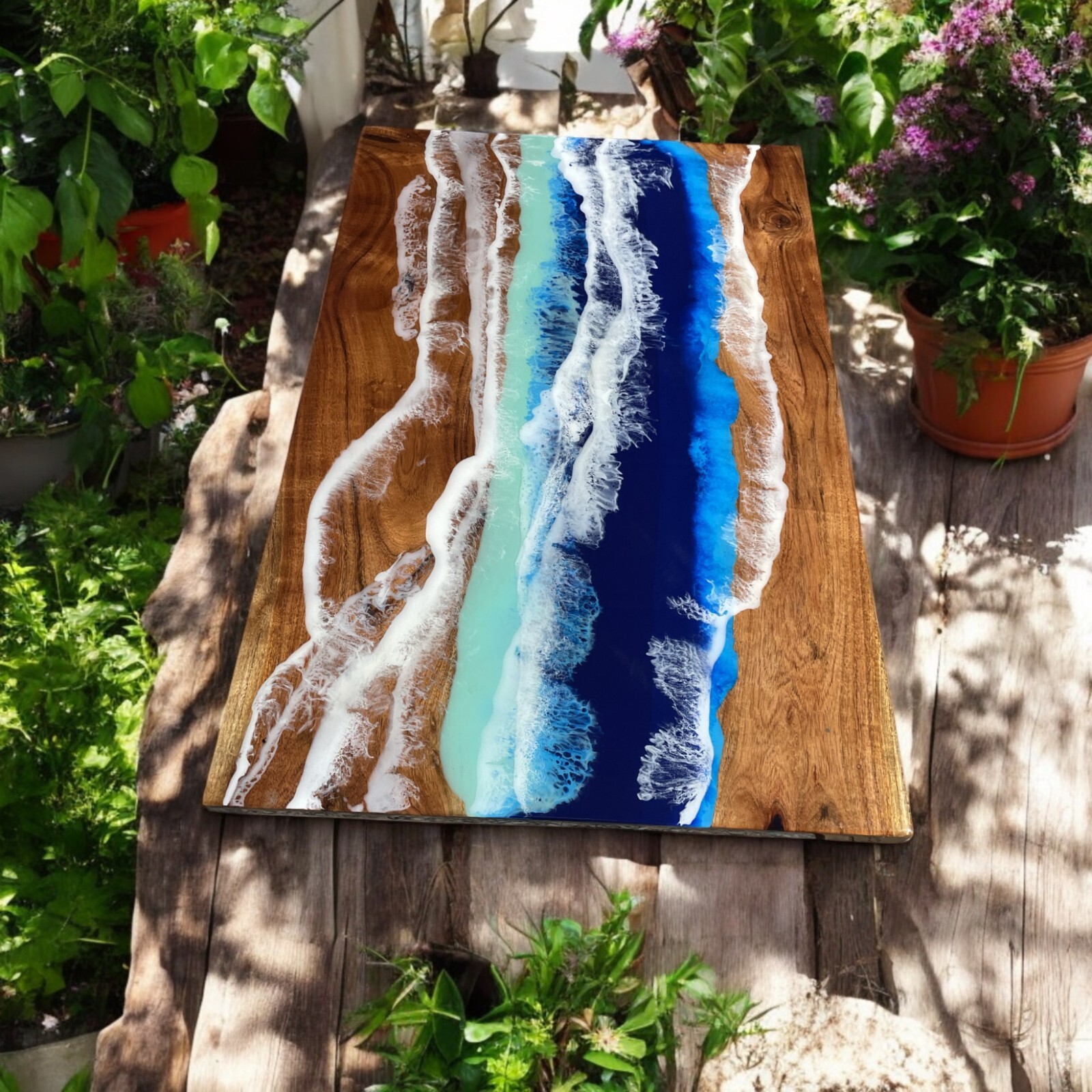 This stunning ocean epoxy resin dining table is a true showstopper! The elegant wave design looks like liquid art frozen in time, blending beautifully with the natural wood grain. The 48"x30" size is perfect for intimate dinners or entertaining guests, while the 16.5" stand height creates an ideal dining position. I love how each piece is uniquely crafted - the slight variations in epoxy color and wood patterns make it feel like a one-of-a-kind artwork rather than mass-produced furniture. The craftsmanship is exceptional, with smooth surfaces and flawless resin work. It's become the centerpiece of my dining room, constantly drawing compliments from visitors. While it may not match the photos exactly, the quality and beauty exceed expectations!