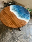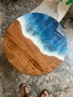 Ocean Epoxy Resin Round Coffee Table, Acacia Center Breakfast Table, Home Decor
