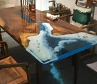 Ocean Epoxy River Table Top With Resin River Handmade Walnut Wooden Table Decor