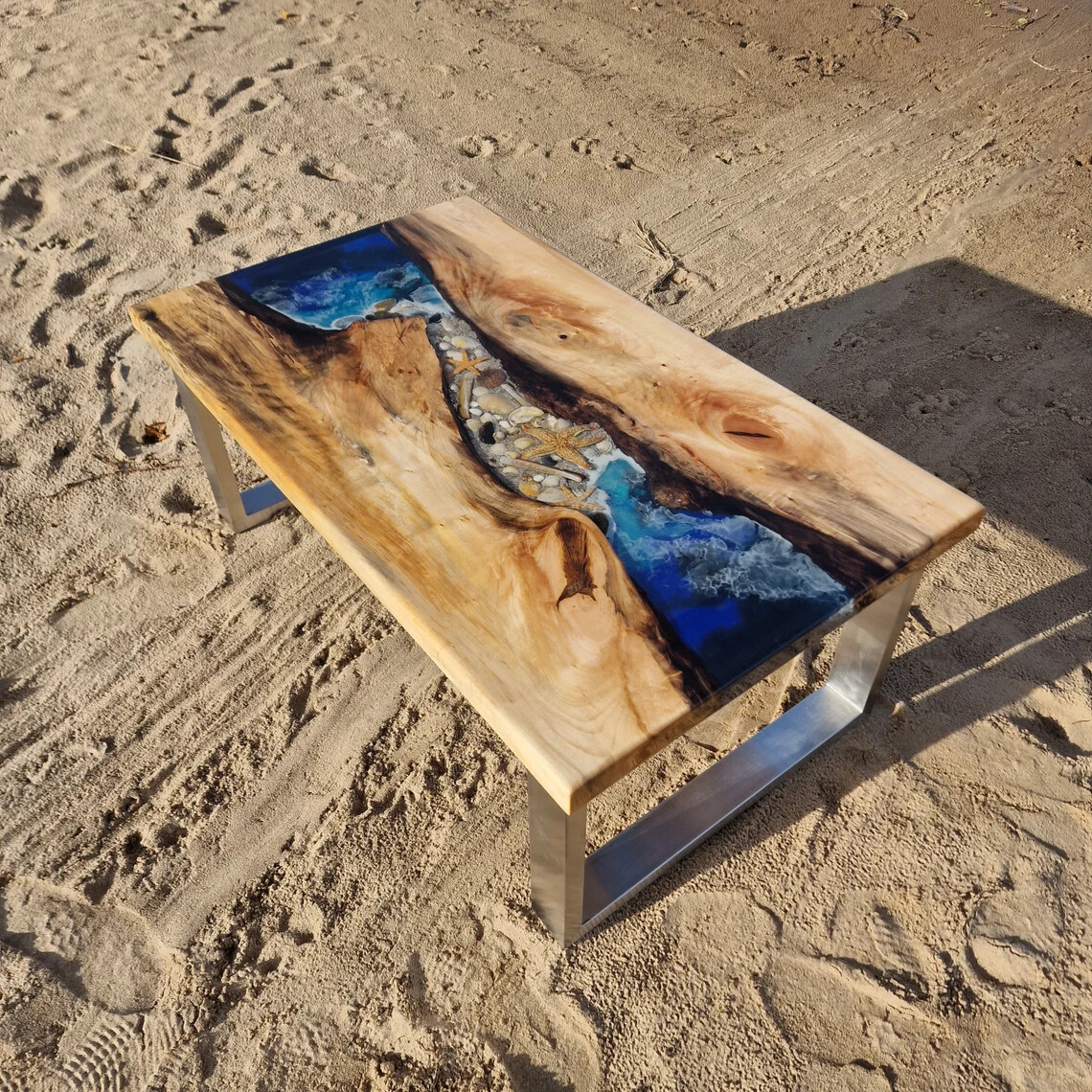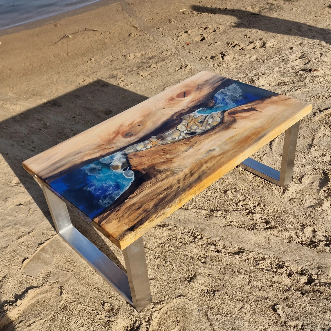 Description: Welcome to epoxy furniture , where art meets functionality! This stunning handcrafted epoxy resin dining table is a true masterpiece that will elevate the aesthetics of any space. Carefully crafted with precision and attention to detail, this table is not just furniture; it's a conversation starter. Key Features: Material: High-quality natural acacia wood base complemented by a crystal epoxy resin surface. Size: according to size variation Finish: Smooth, glossy finish that highlights the natural beauty of the wood and the mesmerizing patterns within the epoxy. Versatility: Ideal for use as a dining table, coffee table, or a statement piece in your home or office. Additional Details: Each piece is unique, as the epoxy resin creates one-of-a-kind patterns. Sturdy construction ensures durability for long-lasting enjoyment. Any customization options available, such as different wood types, sizes, or colors. Care Instructions: To maintain the beauty of your epoxy table, simply wipe clean with a soft, damp cloth. Avoid harsh chemicals or abrasive materials. NOTE: This listing is for a custom Live edge Wooden Table. The Slab shown in the photos has already been purchased, the new one may be slightly different from the picture because wood slabs are natural .and it’s a handmade work, I will share images for approval before dispatch. * We can make the table top similar to this as it is handmade or natural process you will not get the same as shown in picture but you will get the similar one * The table top is made in Agra India & fully handmade. * The top will be delivered by FedEx or DHL free of cost door to door. * If there is any local tax, custom duties or Vat will be paid by the buyer at the destination. * The parcel is dispatch with proper packing & fully insured covering all kind of risk. Kindly Note: As raw wood is used in its natural form and shape to make the table, the table shown in the photos has already been purchased so actual product may vary from the picture shown. Thanks for Visiting..............