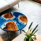 We Accept Custom Order too please contact us. Elevate your living space with our modern round epoxy coffee table, where contemporary design meets timeless elegance. This stunning piece seamlessly combines the sleek sophistication of white epoxy resin with the warmth and character of natural wood, creating a focal point that transcends trends. Key Features: Contemporary Aesthetics: The modern, round silhouette of this coffee table makes it a chic addition to any living room. Its clean lines and minimalist design contribute to a contemporary aesthetic that effortlessly complements various interior styles. White Epoxy Resin Top: The tabletop is adorned with a sleek white epoxy resin finish, adding a touch of luxury and depth to the surface. The resin not only provides a high-gloss shine but also ensures durability, making it resistant to scratches and stains. Wooden Base: The solid wooden base serves as both a sturdy foundation and a natural, organic element that softens the modernity of the white resin. Crafted with care, the wooden base contributes warmth and character to the overall design. Versatile Functionality: Whether you're enjoying your morning coffee, hosting friends, or simply displaying your favorite decor items, this coffee table offers versatile functionality. Its round shape encourages easy conversation and creates a welcoming centerpiece in your living space. Handcrafted Excellence: Each coffee table is meticulously handcrafted by skilled artisans, ensuring a level of excellence that goes beyond mass-produced furniture. The attention to detail and dedication to quality craftsmanship make this piece truly unique. Easy Maintenance: The combination of white epoxy resin and solid wood not only enhances aesthetics but also facilitates easy maintenance. Simply wipe the surface with a soft cloth to keep it looking pristine. Ideal for Modern Living Spaces: Whether you're furnishing a contemporary apartment, a stylish loft, or a modern home, this coffee table effortlessly enhances the ambiance of your living space, making a statement without overpowering the room. Specifications: Dimensions: 15"x15" Inches Materials: High-quality wood, epoxy resin Colors: As Photos Finish: Glossy and durable Shipping and Packaging: * We can make the table top similar to this as it is handmade or natural process you will not get the same as shown in picture but you will get the similar one * The table top is made in Agra India & fully handmade. * The top will be delivered by FedEx or DHL free of cost door to door. * If there is any local tax, custom duties or Vat will be paid by the buyer at the destination. * The parcel is dispatch with proper packing & fully insured covering all kind of risk. Thanking You...