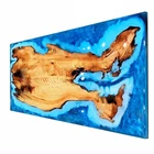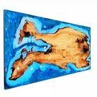 Ocean Epoxy Walnut Dining Table Top, Resin Office Desk Top, Furniture Table Deco