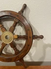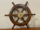 Antique Wooden Ship Wheel~36" Large Steering Captain Wheel~Nautical Wall Decor Description: Material : Brass & Wood Finish : Natural Brown Polish Weight : 2.850 kg Approx Size : 36.22 x 36.22 x 1.8 inches, 91.99 x 91.99 x 4.6 cm approx Look Photos For Actual Image Of Product. All Work is Hand Made. This is a Reproduction Item, Not Sold As Antique Good Piece of Collection