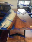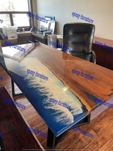 Transform your kitchen and dining space into a coastal haven with our stunning Ocean Walnut Epoxy Table. Meticulously handcrafted, this one-of-a-kind piece seamlessly blends the warmth of walnut wood with the ethereal beauty of ocean-inspired epoxy resin. Key Features: Natural Elegance: The table is crafted from high-quality walnut wood, showcasing its natural grains and warm tones. Each piece of wood is carefully selected for its unique character. Oceanic Resin Artistry: The tabletop features a captivating epoxy resin design that mimics the fluidity and movement of ocean waves. Swirls of blues, greens, and whites create a mesmerizing visual experience. Durable and Functional: The epoxy coating not only adds a stunning aesthetic but also provides a durable, heat-resistant, and easy-to-clean surface, making it ideal for daily use in your kitchen and dining area. Versatile Design: Whether you're hosting a dinner party or enjoying a family meal, this table seamlessly blends into various decor styles, from coastal and rustic to modern and contemporary. Custom Craftsmanship: Each table is handcrafted by skilled artisans, ensuring a level of craftsmanship and attention to detail that sets it apart from mass-produced furniture. Specifications: Dimensions: 48"x24" Inches Stand Size: 28" Inches tall Black Iron Legs Materials: High-quality wood, epoxy resin Colors: Ocean Blue Finish: Glossy and durable Shipping and Packaging: * We can make the table top similar to this as it is handmade or natural process you will not get the same as shown in picture but you will get the similar one * The table top is made in Agra India & fully handmade. * The top will be delivered by FedEx or DHL free of cost door to door. * If there is any local tax, custom duties or Vat will be paid by the buyer at the destination. * The parcel is dispatch with proper packing & fully insured covering all kind of risk. Thanking You...