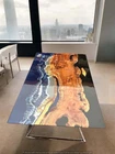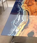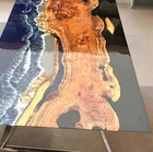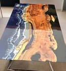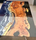 Ocean Wave Epoxy Resin Center Sofa Dining Table Top Natural Acacia Wooden Tables