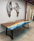 Ocean Wave Epoxy Resin Top ,Center Sofa Dining Table, Custom Kitchen Slab Table