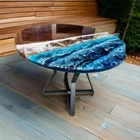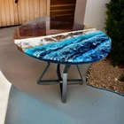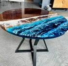 Ocean Wave Themed Resin Epoxy Coffee Table Handmade Live Edge Wood Cafe Tabletop