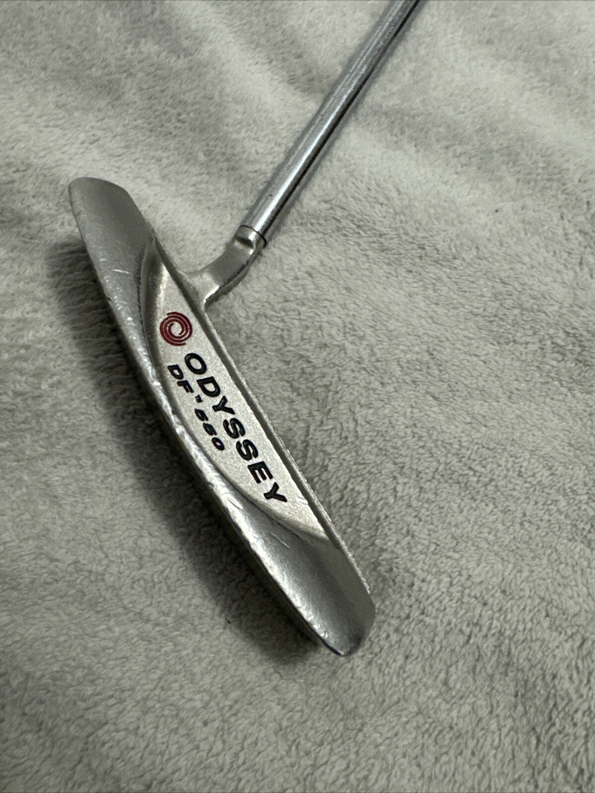 Enhance your golf game with this Odyssey Dual Force DF 550 RH 34" putter. Crafted with a stainless steel head and steel shaft, this blade putter is designed to provide exceptional accuracy and control on the greens. The black lie angle and silver color of the club make it a stylish addition to any golfer's bag. This right-handed putter is designed for unisex adults and has a regular flex. The club number is a single putter, and the model is Dual Force DF 550. The shaft material is steel, and the lie angle is standard. Perfect for any golfer looking to improve their short game, this Odyssey putter is a must-have.