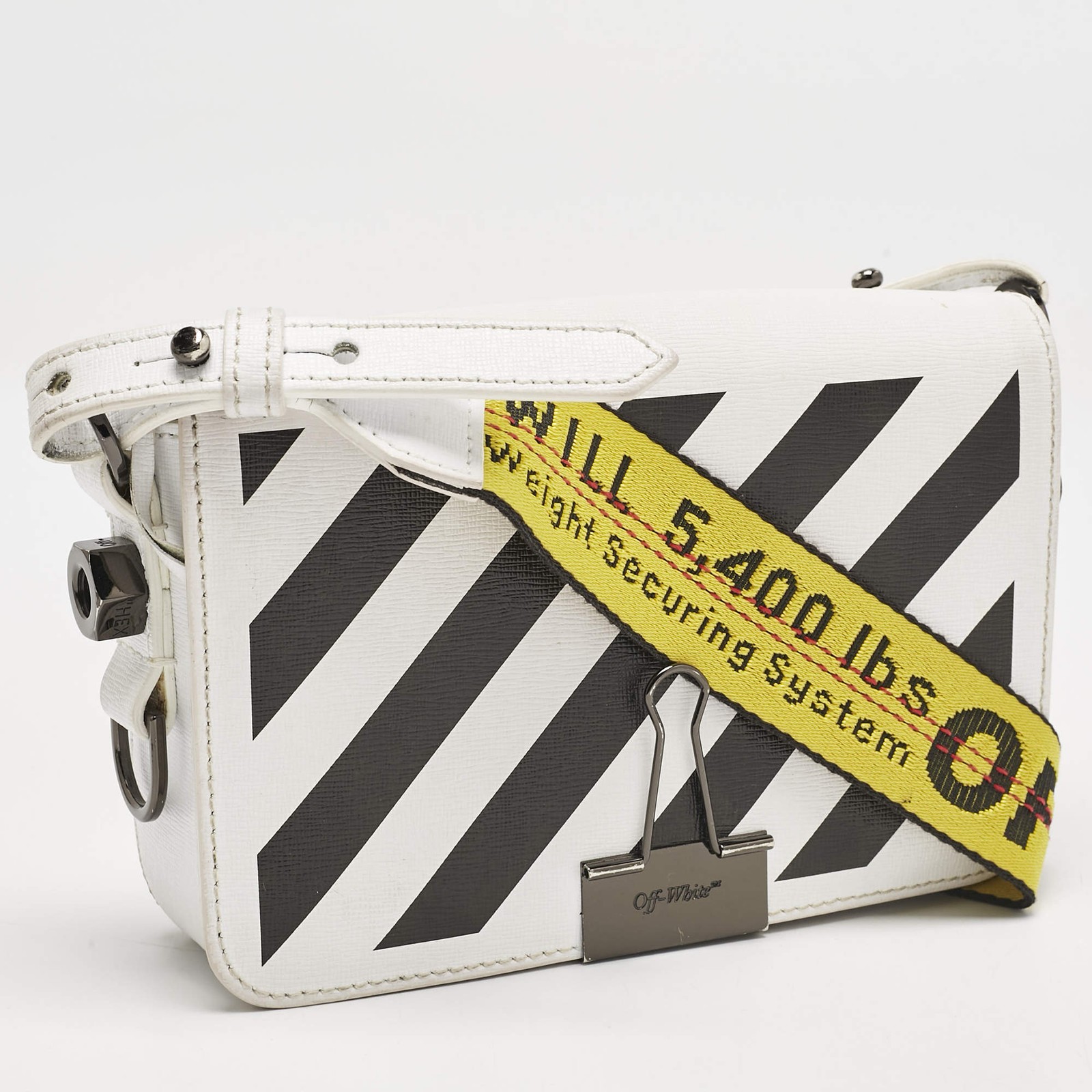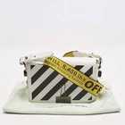 Our eBay Store About Us Contact Us Add to Favorite Sellers OffWhite WhiteBlack Diagonal Print Leather Mini Binder Clip Crossbody Bag The Milan based fashion label Off-White by Virgil Abloh was conceived to link the gap between streetwear and high fashion. Inspired by the youth culture and a distinctive appeal, Virgil Abloh makes designs with a cult following. This black and white crossbody bag is crafted from leather and features a striped pattern, an adjustable shoulder strap, a foldover top, and a nylon interior. Product Details Brand Off-White Includes Original Dustbag Certified by The Luxury Closet This item has gone through a detailed authentication process overseen by our experts. We offer a lifetime guarantee of authenticity on all our items. How We Check The in-house team of experts at The Luxury Closet is highly trained to verify the authenticity and the condition of the luxury products. They ensure that only 100% authentic items are put on sale.The evaluation process is unique with its own mix of assessment criteria and differs according to the category. Each item is evaluated based on the following combination of hallmarks, hardware, stitching, symmetry, material, craftsmanship, stamping, codes, hologram stickers, and packaging. Our authenticators also check if the items have been modified or amended (e.g., aftermarket diamonds, replaced batteries, repaired bags, etc.) Please note that this handbag may have a perfume scent, as it was stored and packaged in Dubai where such fragrances are commonly used. International Buyers Import duties, taxes and charges are not included in the item price. These charges are the buyers responsibility. Please check with your country’s customs office to determine what these additional cost will be prior to buying.