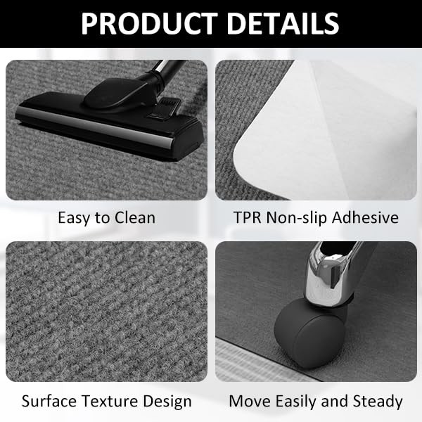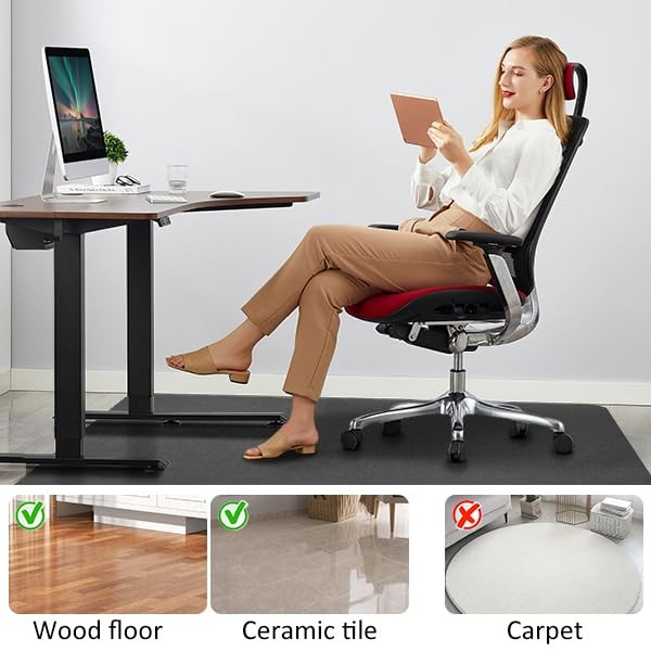 1 【Hardwood Floor Chair Mat】Office chair mat protect your hardwood floor from abrasion by hard chair wheels and also reduce the sound of rolling wheels, preventing noise from affecting others. 【Hight Quality and Eco-Friendly Material】The desk chair mat is made of high quality polyester fiber, white non-woven fabric and rubber PE film. Safe and non-toxic, will not cause harm to humans and pets. The eco-friendly primer on the back also leaves no residue. 【Super Fixed & Anti-Slip】Office chair floor mat can be firmly attached to your hardwood floor or tile, do not move easily because of the slide of the chair, the surface is soft looped fabric, like a carpet, the chair will roll smoothly on the chair cushions. 【Easy to Clean and Use】Tear off the PE film on the back of the chair mat and spread it in a suitable position. If the surface of the seat cushion is dirty, you can clean it directly with a vacuum cleaner or put it in the washing machine. 【Multipurpose Office Chair Mat】Our hardwood floor chair mat are suitable for tiles, hardwood floors and hardwood floors to protect the floor and prevent the chair from slipping away; At the same time, the large size of the foot mat is also suitable for doormat, table and chair mat, you can also cut yourself into the size and shape you want. TO COUSTOMERS: If you are not satisfied with the product, or if there is any problem with the product, you can choose to our at the first time in the order interface, we will be the first time to help you get the perfect solution.
