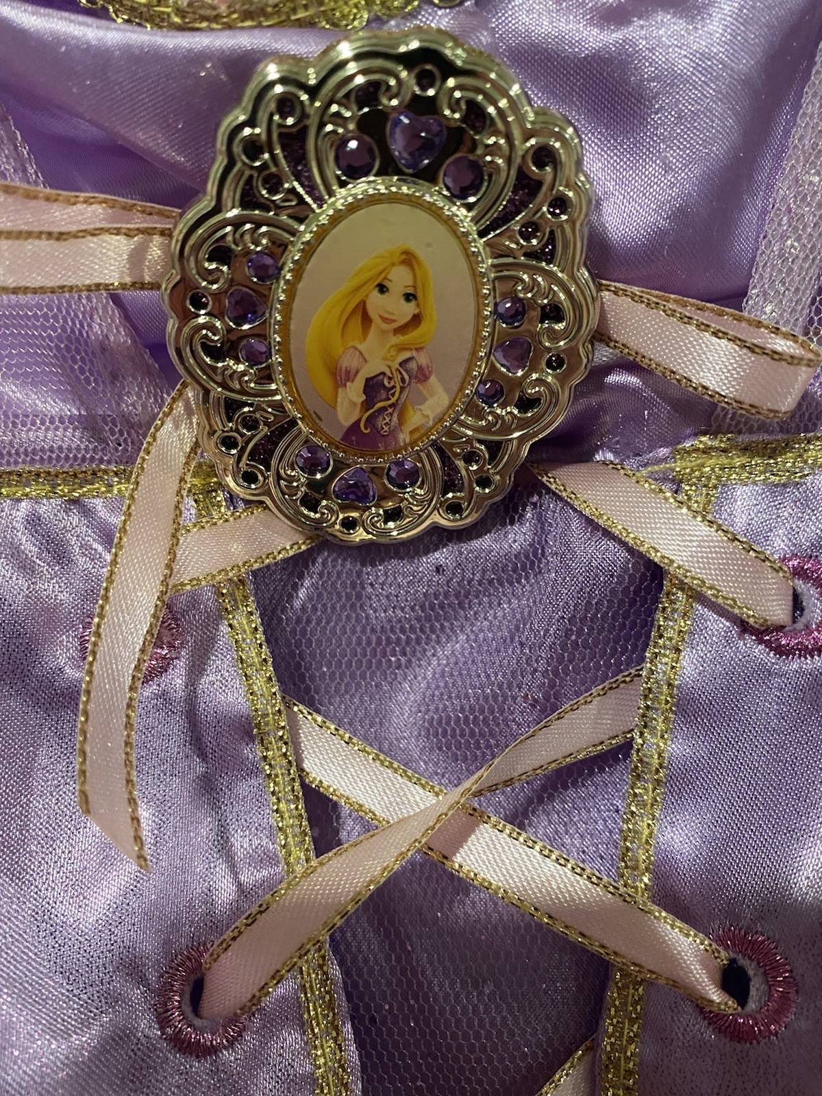 This Official Disney Licensed Youth Rapunzel Dress in size M is a purple dress featuring an elastic and stretch material, perfect for a comfortable fit. Made of polyester, this dress is designed with a Rapunzel theme, making it an ideal choice for young girls who love the character. With the Disney brand and official licensing, this dress is a high-quality and authentic representation of the beloved Princess Rapunzel. A must-have for any young girl looking to dress up as their favorite fairy tale character. Especially with Halloween around the corner. Open to negotiation!