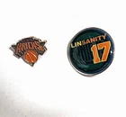 Show your love for the New York Knicks with this set of 4 official NBA pins and 1 collectible key ring from Steiner Sports. The pins feature the iconic Knicks logo and are perfect for displaying on your backpack or hat. The key ring is made with game-used uniform material, adding a unique touch to your collection. This set is a must-have for any Knicks fan and is officially licensed by the NBA. It's the perfect accessory to show off your team spirit and support for the Knicks during the regular season. Get your hands on this set today and add it to your collection. The LINSANITY #17 pin for the great memories the NY Knicks Fans had! Loc. S1-FF