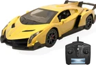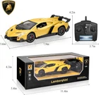 【OFFICIALLY LICENSED BY LAMBORGHINI】 1/24 model size is 7.9 x 3.6 x 1.9 inch; It is made of durable, lightweight materials and odorless spray paint, injection-molded body, strong and sturdy components to bring you an excellent racing experience. 【EASY TO CONTROL】Features a delicate and smooth profile and a remote controller with functions such as forward, reverse, left and right turns which easy to control and the car responds well.kids can enjoy great fun with this function car. 【ANTI-VIBRATION PERFORMANCE】Each wheel is equipped with a coil spring shock absorber, which can effectively prevent damage caused by vibration and protect electronic components in the body. The impact-resistant body ensures that it has strong crash resistance and can maintain good condition in many collisions. 【LED HEALIGHTS】The bright led headlights will glow with forward motion. It is out of this world when the dazzling headlights glowing in the dark. Wheels are made of high quality rubber to prevent slipping.ABS strong plastic body to prevent scratching. 【IDEAL REMOTE CONTROL CAR FOR BOYS/ADULTS】Can provide an excellent running game experience in streets, parks, backyards and other places, which is a hot topic at birthdays and other holiday parties. The remote control car is the best toy for children to explore the field of automobile technology. This is a great gift to help your child's brain develop. Suitable for everyone who likes this remote control car. Remote control car*1 Car*1