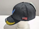 Show your pride in the US Air Force with this officially licensed cap. The black acrylic material and solid pattern make for a stylish and durable hat. The one size fits all design and unisex adults department make this cap a versatile accessory for any fan of the Air Force. The baseball cap style and US Air Force Veteran theme make this hat the perfect addition to any collection. Made in China, this cap is a must-have for any fan of the Air Force.