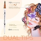 BRUSH & FINE, DOUBLE TIPS, DOUBLE CREATIVITY: These dual-tipped adult coloring marker pens are a must-have for your next masterpiece. The 0.4mm fine tip can glide through the details for intricate coloring, writing, and doodling with fluid precision while the 1-2mm soft brush tip flows through the large area art projects for shading, coloring, blending and more, perfect for calligraphy and creating interesting pattern to design your journal. 36 VIBRANT COLORS CODED WITH NUMBERS FOR FINDING COLORS FAST: This dual brush marker set includes 36 vibrant colors, and each pen is numbered for easier finding your preferred colors. Also, a blank DIY color swatch card is included so that you can edit and organize the colors according to your preferences. NON-BLEEDING INK, PERFECT FOR COLORING BOOKS & JOURNALING: The real benefit of these pens is that you do not have to worry about the bleeding-through problem or your paper is too thin to hold the ink. It won't bleed beyond the line or destroy the next pages. Just use the pens to color your coloring book and design your journals and planner. ACID-FREE & NON-TOXIC WATER-BASED INK: The highly pigmented acid-free allows your artwork to last against fading. It's also a huge plus that the ink is non-toxic and water-based, which is 100% safe for both you and your kids. WHAT YOU WILL GET: These pens are packed in a delicate well-design container which is perfect as a birthday, christmas, valentines day , back to school or just a random gift; Besides, in this package, you will also receive a pre-printed number color swatch card. TO ACHIEVE WATERCOLOR EFFECTS: The ink is water-soluble and you can achieve beautiful watercolor effects by pre-wetting an area first with an aqua brush pen (not included) and then color the area with the colors you want to blend. Note: Since it needs water to blend the colors, please used watercolor paper or mix media paper to prevent bleeding.