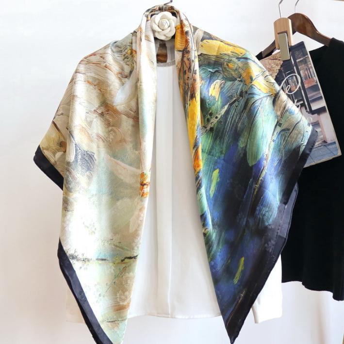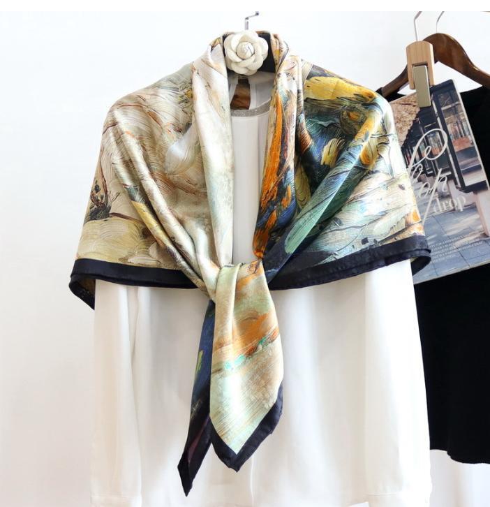 Women's Printed Silk-Satin Head Scarf Shawl Wrap 90x90cm Fashion Accessory
