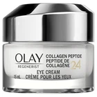 Product Page Olay Regenerist Collagen Peptide 24 Eye Cream, Fragrance-Free, 15 mL Health and Beauty Description: Your skin deserves plumping moisture with OLAY Regenerist Collagen Peptide 24. We're giving you transformative Collagen Peptide in one powerful, fragrance-free eye cream. This formula absorbs quickly, giving you 24 hours of hydration without a sticky, greasy feeling. It’s specifically formulated with tried-and-true ingredients, like Collagen Peptide and Vitamin B3+, to transform the look of your skin. And the longer you use this eye cream, the better your skin will look and feel. Immediately after use, puffiness under your eyes will be reduced and your eyes will look refreshed. On day 1, your eyes will look younger and the skin around them will appear brighter. With one week of use, you'll see a minimization in dark circles, fine lines, and crow's feet. You will also see an improvement in sagginess and elasticity around your eyes. Tap this cream around your eye area morning and night for vibrant and visibly nourished eyes. Stand up for ingredients you believe in and stand firm with your skin with OLAY Regenerist Collagen Peptide 24. Features: EXPERTLY FORMULATED: This fragrance-free eye cream gives you powerful results without a sticky, greasy feel TRIED-AND-TRUE INGREDIENTS: Specifically formulated with tried-and-true ingredients, like Collagen Peptide and Vitamin B3+, to transform the look of your skin 24 HOURS OF HYDRATION: Pat around your eye area morning and night for 24 hours of our formula’s hydration BENEFITS INCREASE OVER TIME: Immediately, puffiness under your eyes will be reduced and your eyes will look refreshed. On day 1, your eyes will look younger and the skin around them will appear brighter